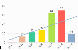 obtained; while,with the 70 publications of 2018,there were only 19 citations.