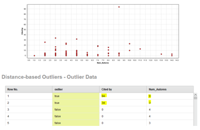 Next, a correlational analysis of the quantitative variables was carried out through the RapidMiner software,which could influence the number of citations of the documents,firstly,the number of citations vs. the number of authors was considered (Figure 5), in order to find out if the self-citations could have influenced the number of citations; however, there is no relevant correlation between these two variables. Two atypical values have also been found,the first referring to the publications that stand out in relation to the rest of the manuscripts, where the correlation has been verified with the data of all the scientific publications of Ecuador (10304 records). And the second considering that the number of authors with citations of