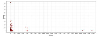 In addition, a correlation was made between the number of citations vs. the number of the volume of the journal in which the publication was made (Figure 6). In this case, it has been considered that the second variable can affect the visibility of research papers as well as the number of citations. This correlation has been verified with the data of all the scientific publications of Ecuador, in which a relevant relationship has not been observed, due to the