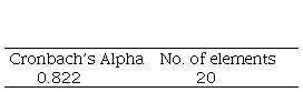 Table 1 shows the Cronbach’s Alpha reliability statistic with a value of 0.822, which is interpreted as high and therefore it can be indicated that the instrument is reliable.