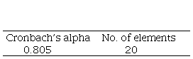 Table 2 shows the Cronbach’s Alpha reliability statistic with a value of 0.805, which is interpreted as high and, therefore, it can be indicated that the instrument is reliable.