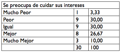 Un 30% de la población encuestada escogen la opción igual, el 30% optan por la opción peor, el 27% por la opción mejor, un 10% escogen la opción mucho mejor y un 3% mucho peor ya q no ven la preocupación.