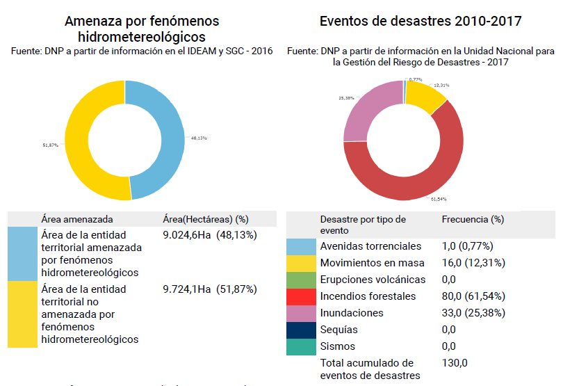 En Colombia se da origen a diversos eventos de carácter natural que representan peligrosidad y pueden ser considerados como factores que aumentan el riesgo a desastres. Según sea el tipo de fenómeno y la severidad de su ocurrencia se hacen visibles daños en un mayor o menor nivel según sea la vulnerabilidad física, social, económica y cultural de quienes se ven afectados.