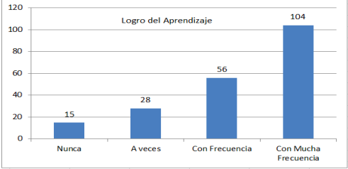 En la figura 1, se aprecia que el logro del aprendizaje por efectos del COVID -19, ha permitido que las estudiantes evaluadas logren incrementar sus conocimientos, demostrados en los valores altos en el logro del aprendizaje cuando se les pregunta si es con frecuencia o con mucha frecuencia, demostrando que a pesar de la situación las personas tienen las ganas de aprender.