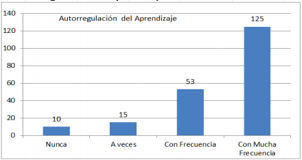 Figura 3, se presenta los resultados luego de evaluar la Autorregulación del Aprendizaje, lo que demuestra que en estos tiempos difíciles, se puede aprender a utilizar los tiempos disponibles para nuevas experiencias educativas, lo que demuestra que se acomodan con frecuencia y con mucha frecuencia.