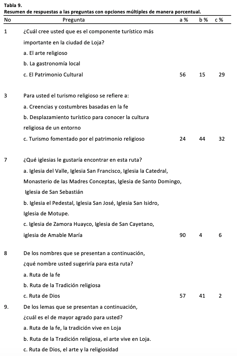 En el desarrollo de la investigación se utilizan herramientas de carácter mixto, cuanti y cualitativa cuya recopilación de los resultados proporciona indicadores relacionados a los datos obtenidos hacen referencia a la importancia en la creación de la Ruta de Turismo religioso en la ciudad de Loja. Los resultados analizados son contabilizados y presentados de manera porcentual.