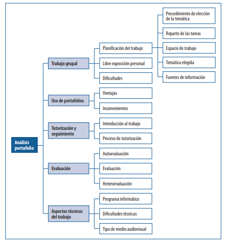 Los grupos han utilizado el portafolio electrónico como medio para recoger información relativa al proceso que han seguido a la hora de la «planificación de las tareas», con 32 referencias recopiladas. La mayoría de los grupos ha optado en todo momento por realizar las fases del trabajo de modo consensuado, mediante la realización de reuniones en las cuales se debatían las distintas cuestiones que había que trabajar y se repartían las tareas en función de las posibilidades de los integrantes. Otro aspecto didáctico relevante se refiere a las dificultades que existen para trabajar en grupo, con 24 referencias, debido a las diferencias que existen entre los miembros del grupo. Algunas de estas se centran en incompatibilidades de horario y responsabilidades laborales y académicas; lugares de residencia distantes de la universidad de referencia que invalidan las posibilidades de trabajo en fin de semana; dificultades para llegar a acuerdos en distintos aspectos del trabajo, etc.
