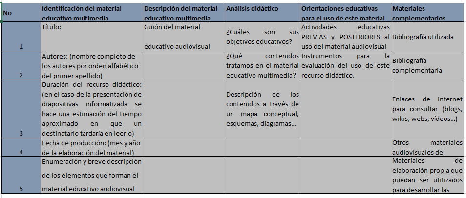 Así mismo de posterior, a mediados del mes de octubre, se desarrollaron dos charlas teóricas de una hora de duración, cada consiste en la explicación descriptiva relacionada con el desarrollo del plan pedagógico multimedia que se compone de dos tareas académicas. El trabajo se califica sobre un 30% de la nota final de la asignatura, y a través de un proyecto socioeducativo sobre el diseño y la realización de un material educativo multimedia (MEM) relacionado con alguna temática transversal (educación en valores, vial, o ambiental, etc.) y la elaboración de la guía didáctica multimedia (tabla 1).