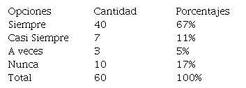 Se determinó que el 67% de los adultos mayores consideran que siempre anotan recordatorios, lo que concluye que para que el individuo proceda hacer este tipo de anotaciones es porque el área de las funciones ejecutivas y memoria está afectada por procesos degenerativos propios de la edad.