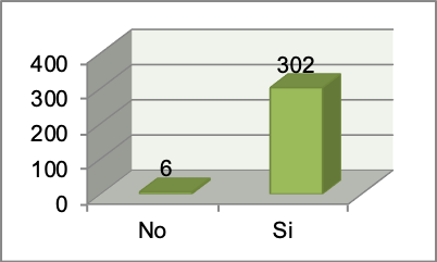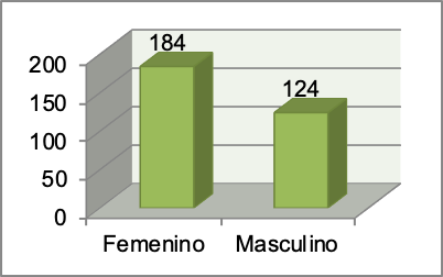 Se puede observar que 124 de los 308 consultados son de sexo masculino, esto corresponde al 40.3% de la muestra. Y 184 de los 300 consultados son del género femenino, esto corresponde al 59.7% de la muestra.