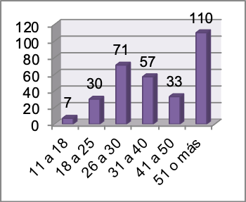 Para obtener información acerca de la edad de los consultados se estableció 6 intervalos (Columna 1), de estos el de mayor relevancia es aquel que indica que el 35.7% de los entrevistados tienen 51 o más años de edad.