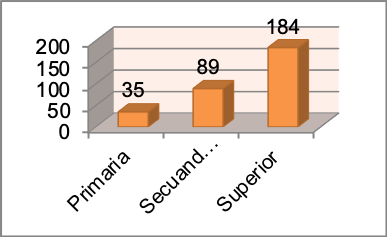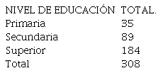 Esta variable registra el nivel de formación de la persona a la cual se entrevistó, de estas frecuencias se destaca que 184 (59,7%) de los entrevistados tiene nivel superior de formación.