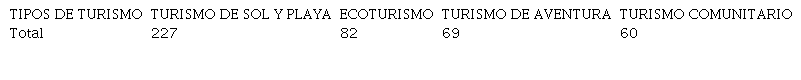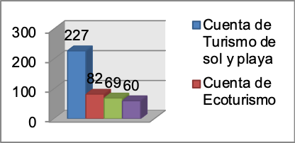 Esta variable registra el número de personas que han realizado al menos un viaje, indicando que 227 (73.7%) personas han realizado viaje(s) por turismo de sol y playa frente a 82 (26.6%) personas que lo han realizado por ecoturismo. El 22,40% de los encuestados realizó turismo de aventura frente al 19,48% que realizó turismo comunitario.