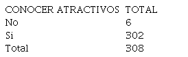 Se consultó además sobre el interés en conocer sobre la cultura del lugar, la información indica que 304 (98,7%) considera que si debería conocer sobre la cultura del lugar que visita mientras que un 1,3% de estas personas no lo consideran necesario.