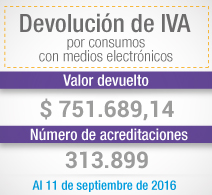 Para ello, el usuario debe disponer de una cuenta de dinero electrónico. Solo por una vez, el Servicio de Rentas Internas (SRI) realizará la devolución de forma acumulada desde la tercera semana de mayo, por las compras realizadas desde el primer día del mes. A partir de esa fecha las devoluciones se harán semanalmente, informó la entidad a través de un comunicado. No existen condiciones o restricciones sobre montos máximos de las operaciones. Tampoco se requiere disponer de fuertes sumas de dinero en efectivo para habilitar una cuenta de dinero electrónico. Este medio de pago puede ser utilizado en cooperativas de ahorro y crédito, supermercados, farmacias, bancos, restaurantes u otros establecimientos autorizados. Las autoridades del Banco Central del Ecuador (BCE) -la entidad responsable de la regulación del medio de pago- señalaron que los ciudadanos podrán disponer del dinero acumulado en sus cuentas en cualquier instante. (www.eltelegrafo.com.ec, 2016)