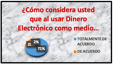 Se toma como referencia a una de las preguntas que mayor importancia tubo al realizar las preguntas, como resultado nos indica que si es favorable y confiable usar dinero electrónico como forma de pago obteniendo beneficios en cuanto al crecimiento económico que tendrían al implementarlo.