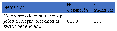 El conocimiento que se tiene, de acuerdo al estudio de tipo descriptivo que se ejecutó en zonas aledañas es la siguiente. Se realizaron 399 encuestas derivadas de la siguiente fórmula: