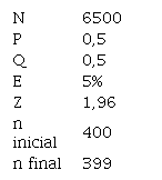 Al no realizarse una hipótesis, se considera la probabilidad de ocurrencia de un 50% y el margen de error de un 5%; por tal razón y al tratarse de una población finita, el valor de la muestra es de 399.
