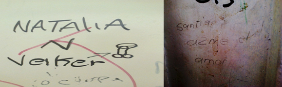 Relacionado con la categoría amor, son frecuentes en la Institución los grafitis en paredes, baños y aulas de clase, imágenes que demuestran abiertamente días, fechas, encuentros, deseos pasionales y sus condiciones y estados de amor con la pareja; sin embargo, es recurrente encontrar grafitis elaborados por personas que fueron rechazadas, fijaciones y amores platónicos, que por inexperiencia o frustración de una realidad no consumada, que la persona lo vive dentro de sí misma o por introversión, pueden desencadenar momentos de conflictos escolares e, incluso, trascender a su entorno familiar.