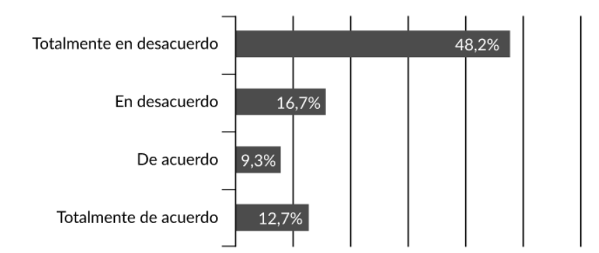 En lo vinculado a las amenazas dentro del centro educativo, aunque hay una mayoría significativa de respuestas en contra de esta afirmación, hay que considerar que se dan porcentajes de alumnos que sí son conocedores de estas situaciones, es decir, que sí han escuchado amenazas de un compañero a otro en el centro (figura 6).
