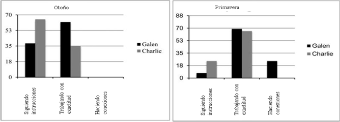 Figura 1. El compromiso de Galen y Charlie con las matemáticas en el otoño (izquierda) y en la primavera (derecha).