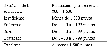 Para la calificación de este ámbito se establecen cinco rubros de evaluación con puntuaciones mínimas y máximas para cada uno de ellos como se muestra en la Tabla 2.