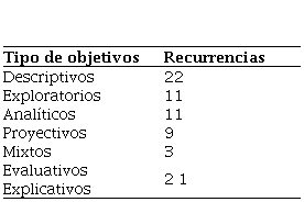 También aparecen los estudios de tipo mixto, evaluativos y explicativos. Cabe mencionar que si bien, los objetivos evaluativos no determinan la mayor preponderancia, sí aparecen con fuerza dentro de la revisión con dos (2) recurrencias.