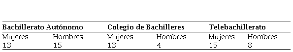 En la Tabla 1, se muestra la distribución de la muestra participante de acuerdo con el tipo de bachillerato.