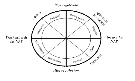 En el polo superior se encuentran los estilos que se apoyan en una mayor flexibilidad y menor regulación; mientras que, en el polo inferior, estilos donde los docentes presentan una mayor regulación, basada en normas, pautas u órdenes. Por otro lado, en el polo derecho, se encuentran los estilos que frustran las NPB; a diferencia del polo izquierdo, donde están los estilos que apoyan las NPB. Con base en esto, Aelterman et al. (2019) crearon el modelo circular de estilos motivacionales, que muestran cuatro estilos que convergen dentro de estas dos dimensiones.