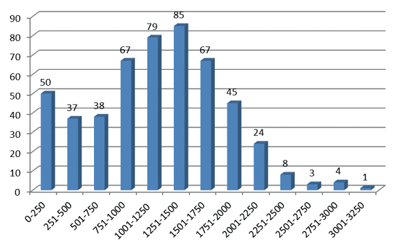 La mayoría de las especies crecen entre los 751 y 1750 m s.n.m. (Fig. 4), siendo Microgramma lycopodioides, M. nitida, Phlebodium decumanum y Vittaria lineata las que se ubican en la parte baja del intervalo altitudinal (0 m), mientras que Pleopeltis polylepis se presenta a mayor altitud (3200 m).