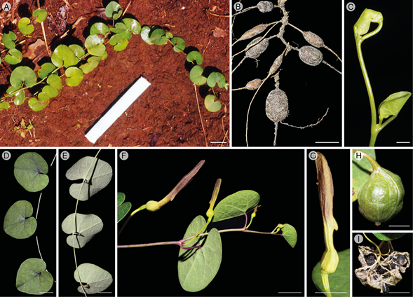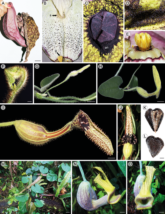 2.1.2.1. Aristolochia cordiflora Mutis ex Kunth, Nov. Gen. Sp. Pl. 2: 149. 1817. TIPO: COLOMBIA. (Lectotipo, aquí designado: lámina XXIV de la Iconografía de la Flora de la Real Expedición Botánica al Nuevo Reino de Granada, isolectotipos: láminas XXVI y XXVIII de la misma iconografía (González y Lozano-Contreras (2014)). Figs. 4A-H.