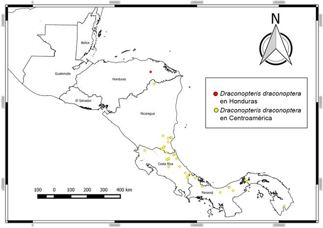 El propósito de este trabajo es registrar la especie Draconopteris draconoptera (D.C. Eaton) Li Bing Zhang y Liang Zhang para Honduras y de esta forma presentar su distribución conocida más hacia el norte (Fig. 1).