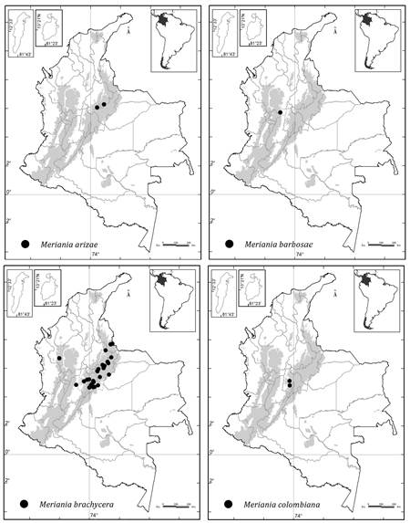 Background and Aims: The genus Meriania has 120 neotropical species, 51 of them in Colombia. This work deals with the taxonomic review of the genus for Colombia, documenting species, subspecies, and synonyms.