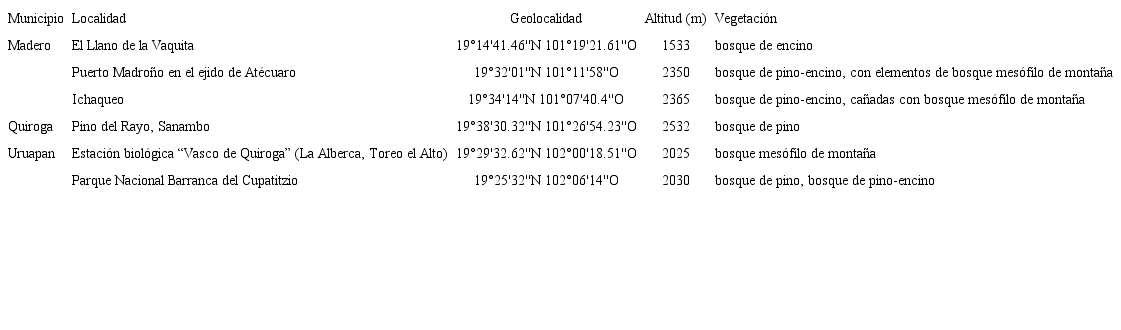 Hábitat: bosque de pino-encino con elementos de bosque mesófilo de montaña.