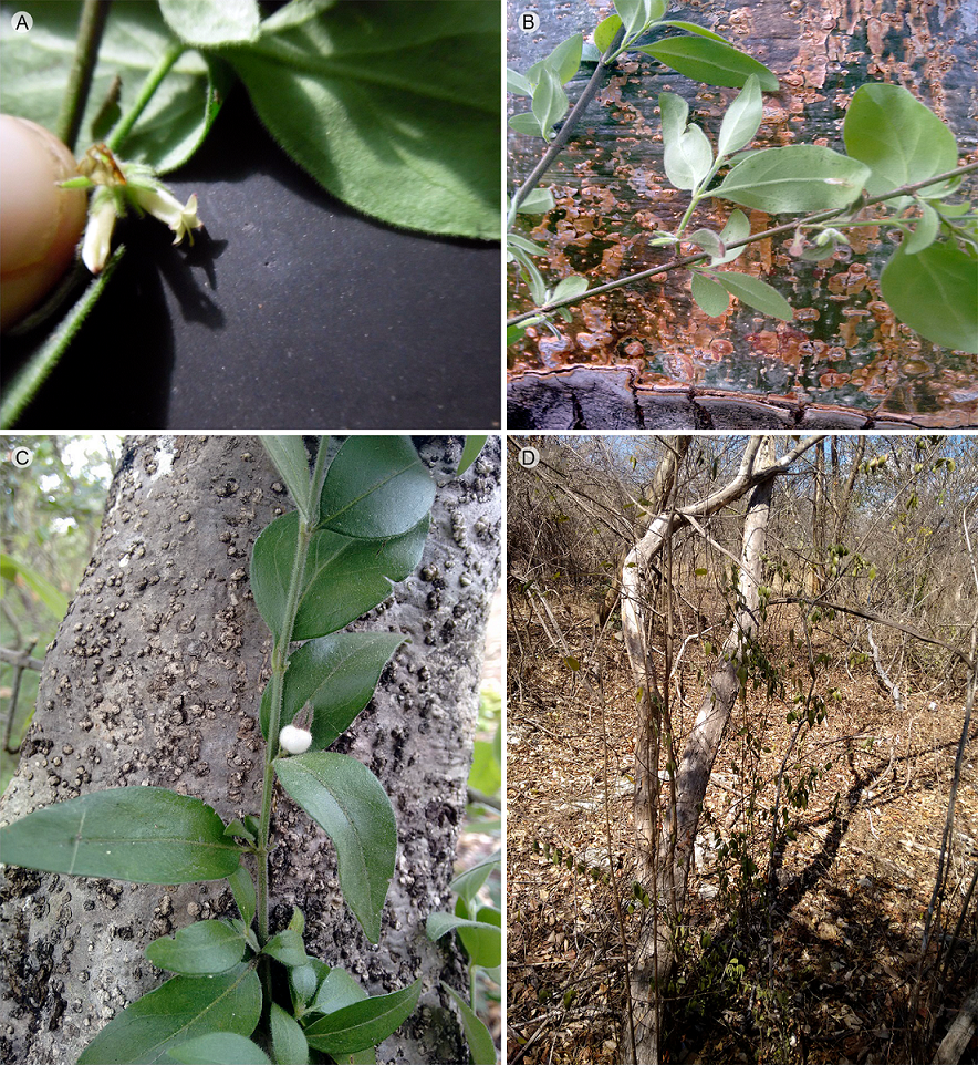 Los ejemplares de las localidades de Acala y Suchiapa presentan todas las características diagnósticas de la especie, que también fueron observadas en los ejemplares examinados de la Península de Yucatán depositados en los herbarios CH y CHIP. Entre las más importantes están la presencia de pubescencia persistente en toda la planta, las flores 4-meras de color blanco-crema (al secarse se tornan de color amarillo intenso), solitarias o dispuestas en címulas de hasta 3 flores. En los ejemplares colectados y revisados, los frutos inmaduros mantenían 4 lóbulos reminiscentes del cáliz. Los frutos maduros de color blanco del ejemplar colectado en Suchiapa son idénticas a las drupas descritas para la especie por Lorence (2012) (Fig. 1).