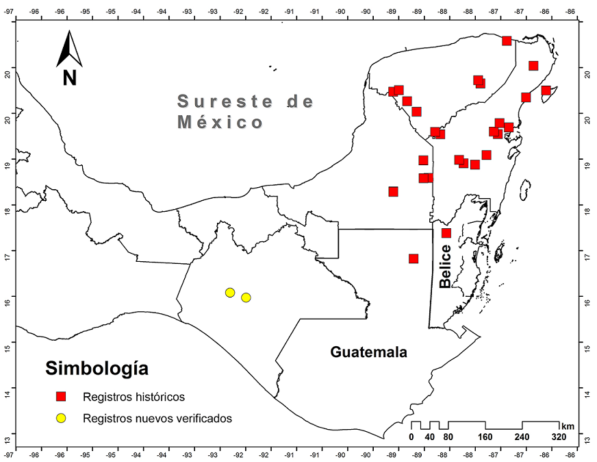 En el presente trabajo se describen las características diagnósticas y el hábitat de la especie con base en la revisión de ejemplares, principalmente mexicanos. La distribución geográfica extendida para esta especie fortalece las afinidades florísticas y las relaciones fitogeográficas entre los bosques tropicales caducifolios de Chiapas, la Península de Yucatán, Guatemala y Belice.