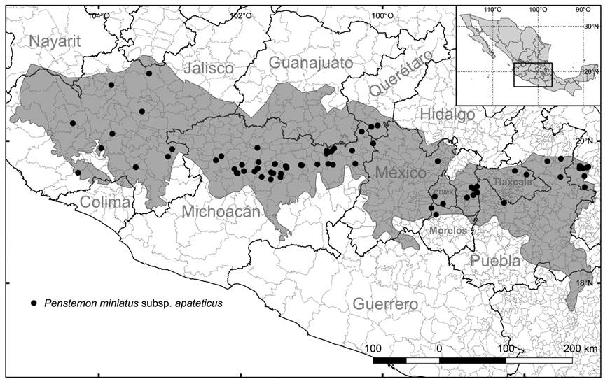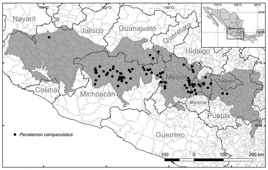 Conclusiones: Aunque no se localizó ningún taxón de Penstemon endémico de la Faja Volcánica Transmexicana, es importante señalar que en esta provincia se concentra la mayor parte del área de distribución de cinco de los nueve taxa tratados. Además, se descubrió que la porción oriental de la Faja Volcánica Transmexicana es la región donde se registra la mayor riqueza de especies del género de estudio.