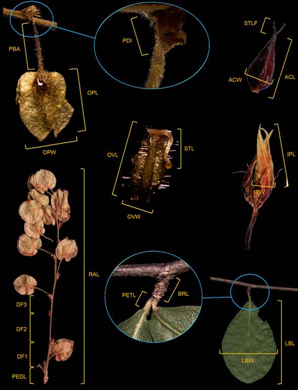 Appendix: Character, character states and acronyms of the characters included in the multivariate analyses of Gymnopodium floribundum Rolfe.