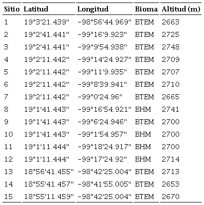 Key words: ArcGIS, biodiversity, invasive species, Morelos, temperate forest.