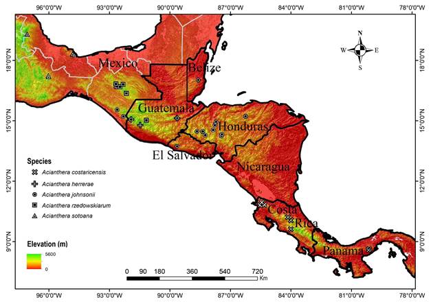 Conclusions: Acianthera subgenus Brenesia has a distribution restricted to Central America. Four of its five species are native to Mexico, and one is restricted to southern Central America.