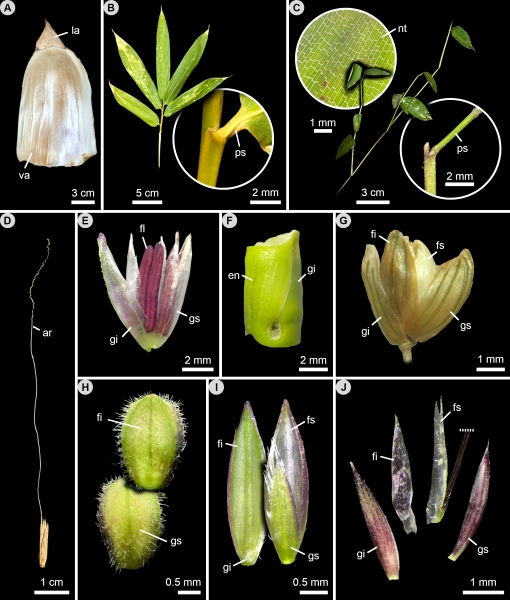 Zuloaga, F. O., M. A. Scataglini y O. Morrone. 2010. A phylogenetic evaluation of Panicum sects. Agrostoidea, Megista, Prionitia and Tenera (Panicoideae, Poaceae): two new genera, Stephostachys and Sorengia. Taxon 59(5): 1535-1546. DOI: https://doi.org/10.1002/tax.595017