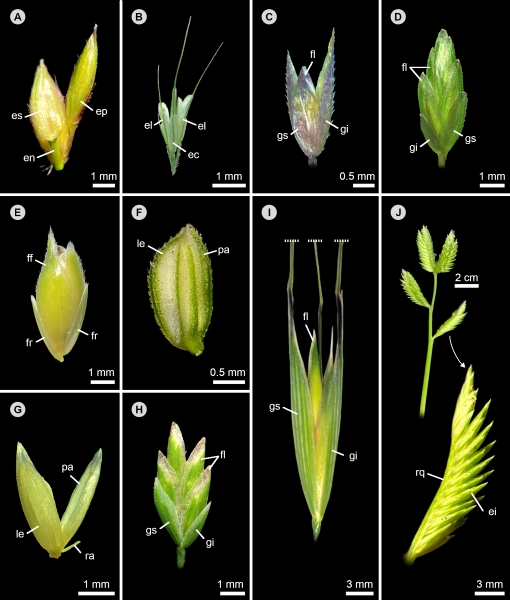 GPWG (Grass Phylogeny Working Group), Barker, N. P., L. G. Clark, J. I. Davis, M. R. Duvall, G. F. Guala, C. Hsiao, E. A. Kellogg, H. P. Linder, R. J. Mason-Gamer, S. Y. Mathews, M. P. Simmons, R. J. Soreng y R. E. Spangler. 2001. Phylogeny and subfamilial classification of the grasses (Poaceae). Annals of the Missouri Botanical Garden 88(3): 373-457. DOI: https://doi.org/10.2307/3298585