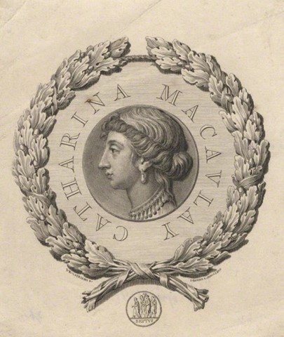 Catharine Macaulay nasceu em 1731, na belíssima propriedade de Olantigh, no sudoeste da Inglaterra. Tornou-se uma celebrada letrada ao escrever livros sobre história, educação, moral e teoria política e social. Em sua atuação nos domínios de Clio, Macaulay publicou duas histórias pátrias. A primeira delas, e certamente a de maior repercussão, foi História da Inglaterra desde a ascenção de Jaime I até a linhagem Brunswick, que termina no reinado de Jorge I. Este livro, em oito volumes, levou 20 anos para ser finalizado, sendo seus cinco volumes iniciais publicados entre 1763 e 1771, e os três finais, entre 1781 e 1783. No intervalo de escrita de sua primeira história, Macaulay começou outro projeto com História da Inglaterra desde a Revolução até os dias de hoje em uma série de cartas a um amigo, obra que teve como fortuna apenas o primeiro e único volume lançado em 1778 também por causa de grandes desavenças em seu círculo próximo de convivência e do rompimento com o amigo-destinatário das cartas, Reverendo Thomas Wilson (POCOCK, 1998; GREEN, 2019).