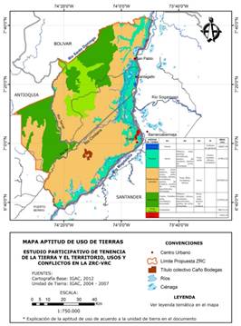 PNUD y ACVC. (2014). Estudio participativo de tenencia de la tierra y el territorio, usos y conflictos en la ZRC del valle del río cimitarra. Barrancabermeja: PNUD - ACVC.