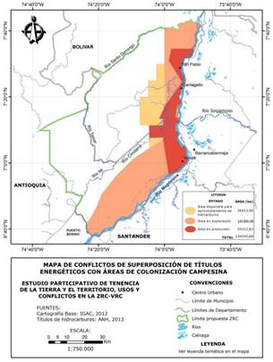 En este sentido, el análisis de la ZRC-VRC debe superar su comprensión a partir de sus límites geográficos determinados por la Resolución 028 de 2002 o del análisis de los planes de desarrollo elaborados por las comunidades; se hace imprescindible evidenciar la conflictividad subyacente a la ZRC, entenderla como un territorio en disputa entre el campesinado y el capital.