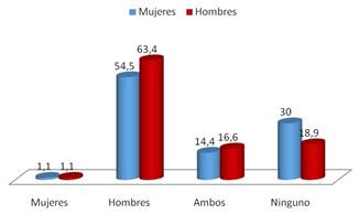 La mayoría de estudiantes entrevistados (as) creen que en sus contextos locales se señala de manera decidida a las mujeres que consumen algún tipo de SPA, y valoran negativamente dicho acto. En la Figura 2, se pueden apreciar las respuestas de hombres y mujeres frente a la pregunta: ¿quién considera que tiene mayor permisividad social para consumir SPA?