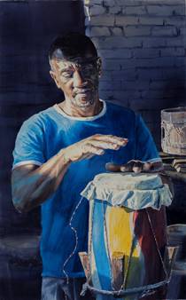 Addo tensando un tambor Katanga