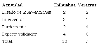 Para este estudio se utilizó una selección no probabilística por conveniencia. El trabajo colaborativo se realizó en el marco del estado de Chihuahua y el de Veracruz por la posibilidad de tener acceso a expertos de los tres niveles en estos Estados y poder observar directamente el proceso de la intervención.