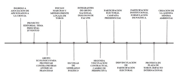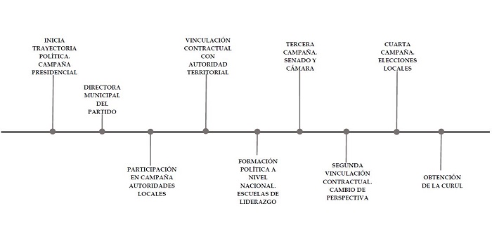 Cada uno de los casos expuestos en los hallazgos, inicia con una gráfica que expone, a manera de línea de tiempo, los principales hitos de cada trayectoria política. Así, para el caso electoral, alternativo, cívico e institucional, se inicia con dicha figura (Figura 2) que introduce al lector en el relato que se construye a continuación.