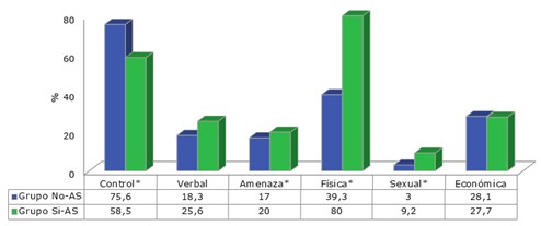 En lo relativo a victimización, a excepción del control, todas las demás violencias fueron exacerbadas en el grupo que busca AS (Figuras 1 y 2), siendo tres veces más la violencia sexual sufrida. En este sentido, llama la atención la altísima prevalencia de madres en la muestra, lo que lleva a preguntarse si fue una decisión consensuada de pareja o es en cambio, un efecto de la violencia sexual encubierta e invisibilizada en la relación, tal y como han identificado otros estudios internacionales (Reina-Barreto, Criollo-Espín y Fernández-D'Andrea, 2019; Vázquez-García y Castro, 2011). Otro reciente metaanálisis señala que la violencia sexual está fuertemente asociada a las mujeres a partir de los 17 años en las primeras relaciones de pareja (Gracia-Leiva et al., 2019).